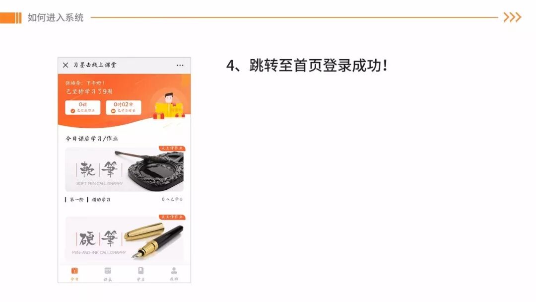 习墨去自主研发的线上学习系统四月起全面启动,开启全部功能为学员提供服务;其中包含了线上视频书画课程、学员在线提交作业、教师评价等学习方面;还有校区上课时间、学员提交请假、查看排课、补课时间等信息,线上学习系统全部功能需学员或家长自主操作使用。